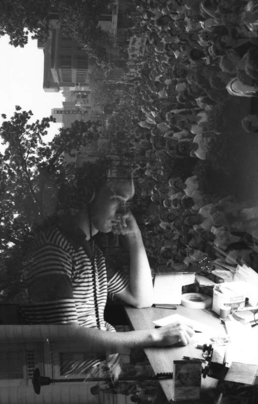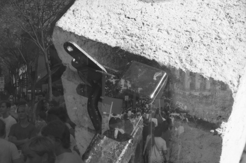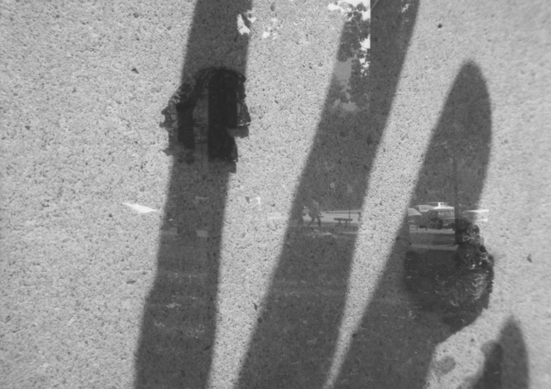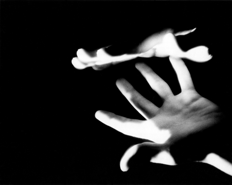 "Between My Fingers" In-camera double exposure. The intentional in-camera double exposure is a rather difficult technique. It requires a good memory of each composition -- I used notes -- and very careful rewinding of the film in order to line up for the second set of exposures.