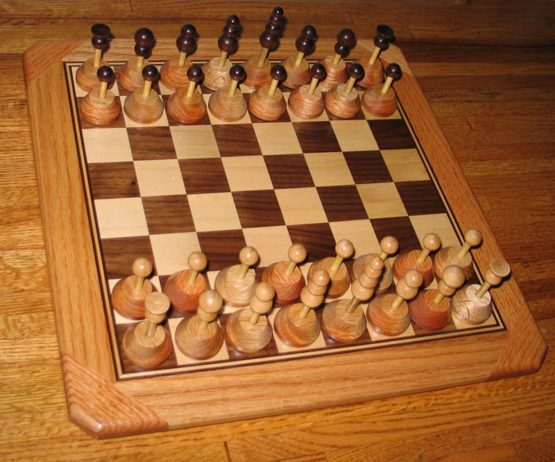 chess set was constructed from oak, black walnut and maple. I made the beads,