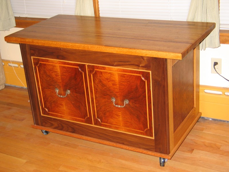 sideboard in our dining room. Its top is a piece of bowling lane and the doors