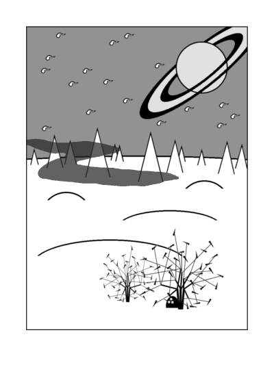 Soon, a younger sladlour arrived to claim a much larger tlinger bush next to the old sladlour's small one. The young sladlour immediately made himself comfortable: he found a shady central spot in which to nest, with convenient low-hanging branches to nibble on. He watched the old sladlour for a while, then called out to him, “Why are you eating so much—and from such a small bush?”